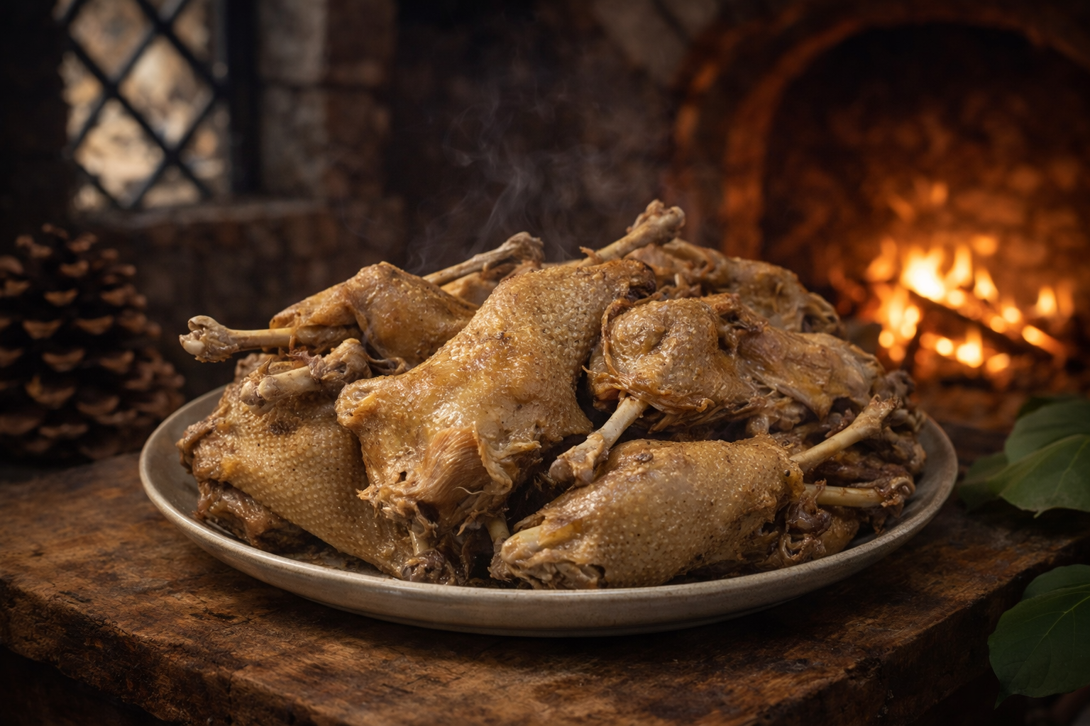 Ardahan’da kar yedikten sonra kesilen kazlar, tuzlanıp sert kış soğuğunda dinlendirilerek hazırlanır ve soğuk hava araçlarıyla İzmir’e ulaştırılır. Özel fırında odun ateşinde 5 saat pişirilen kaz, kendi yağıyla hazırlanan pişi, patates ve bulgur ile birlikte; deri peyniri, hoşaf ve doğal tereyağı eşliğinde servis edilir. Paket sipariş için bir gün önceden aramanız yeterlidir. Kaz servisimiz Aralık-Mart dönemine özeldir.