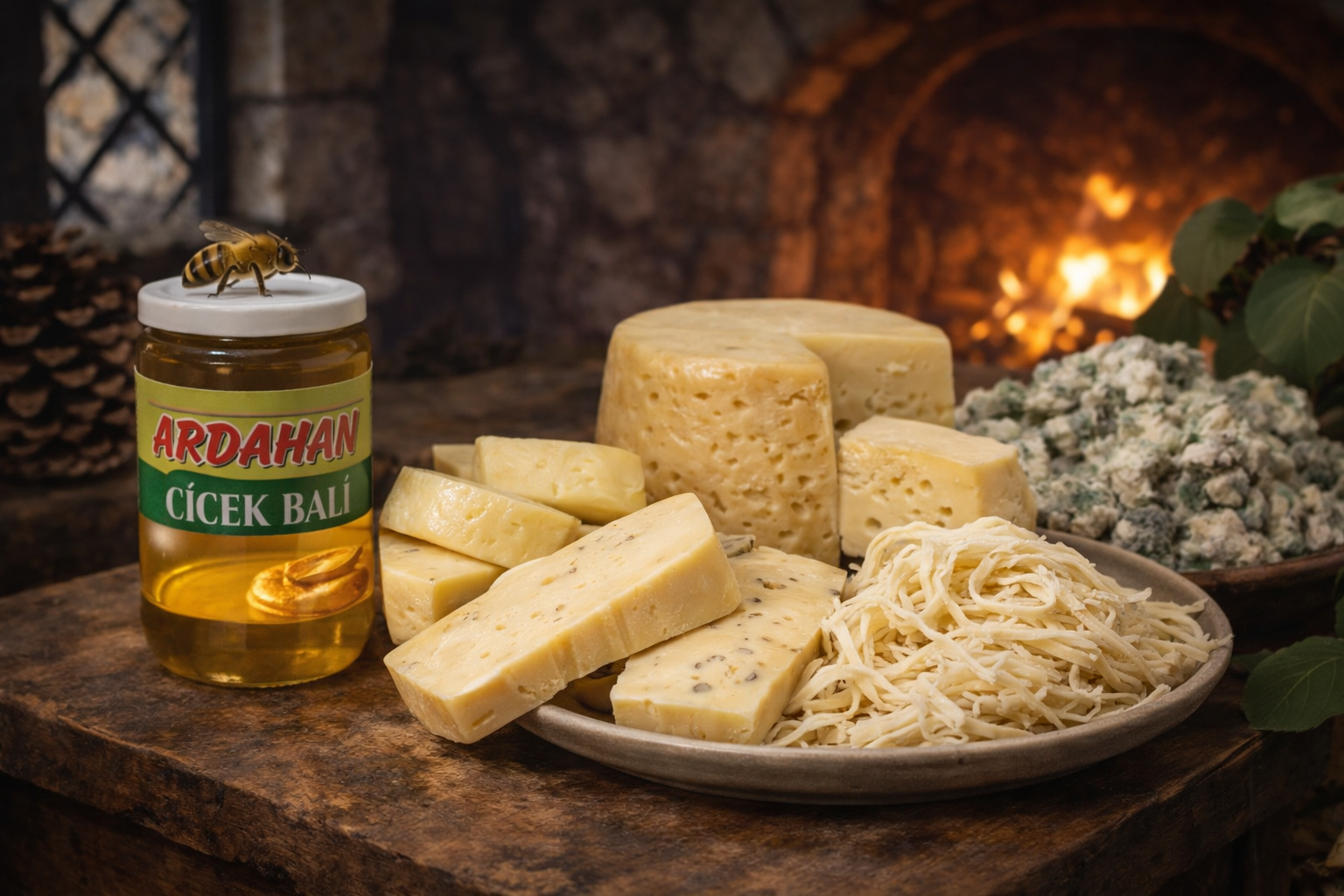 Ardahan’ın eşsiz doğasından gelen lezzetleri, hiçbir katkı maddesi olmadan sofranıza getiriyoruz. Küflü peynir, çeçil peyniri, tuluk peyniri, eski kaşar, kavut tatlısı, kaz eti ve doğal çiçek balı gibi yöresel ürünlerimiz, Ardahan’da özenle hazırlanır ve doğal haliyle paketlenerek İzmir’e ulaştırılır.